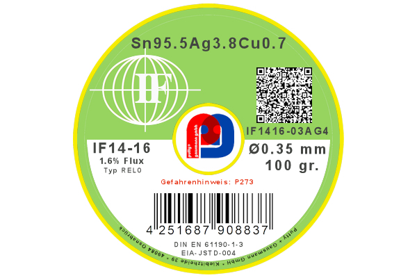 ndern verdunstet hauptsächlich. Die Rückstände nach dem Lötprozess sind leicht mit einer Bürste zu entfernen.IF 14-16 Lötdrähte werden für das Löten von Hochleistungselektronik (Klasse 3) gemäß IPC-A-610 empfohlen.